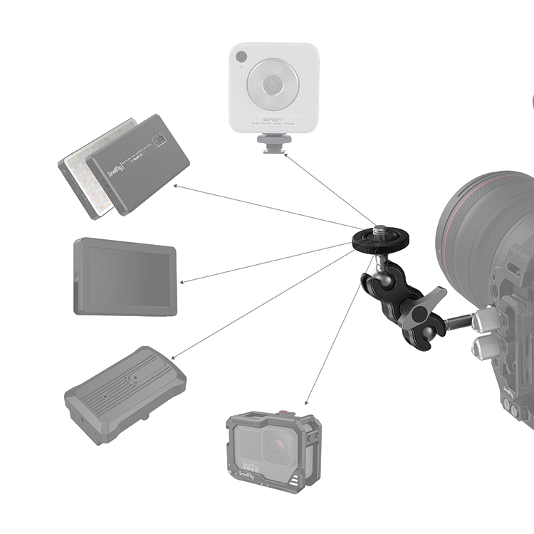 Небольшой Magic Arm с одним удлиненным плечом для установки оборудования в труднодоступных частях клетки или системы риг |