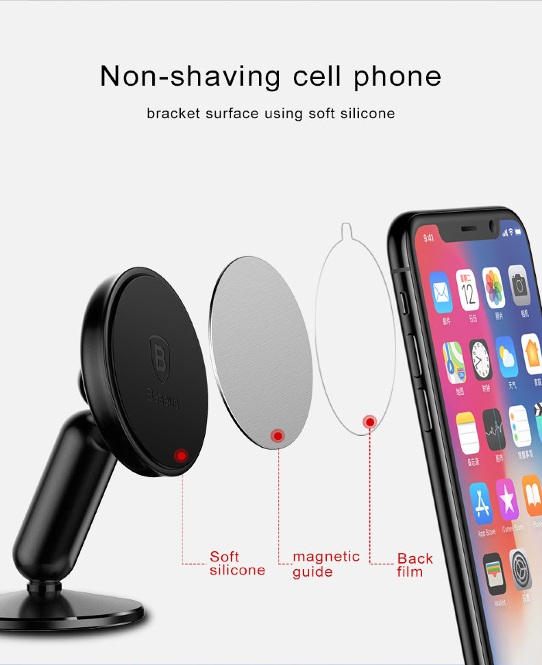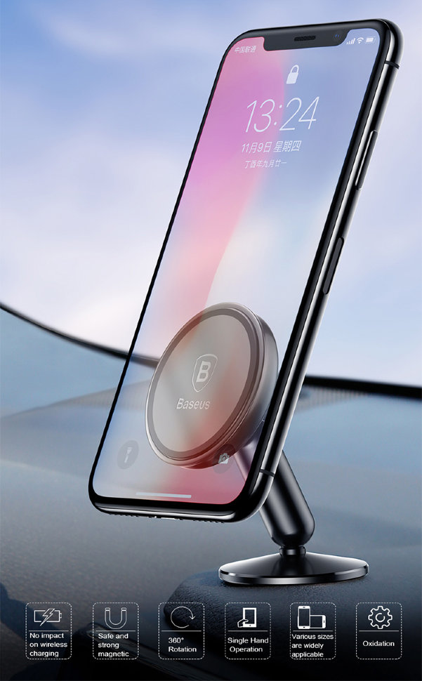 Удобный и надежный магнитный держатель освободит ваши руки во время поездки, а шарнирное крепление позволит установить смартфон под любым удобным для вас углом |
