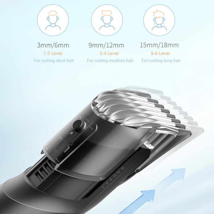 Удобная регулировка длины стрижкиФункциональная машинка для стрижки с возможностью корректировки длины среза. Предусмотрено 6 параметров длины: 3, 6, 9, 12, 15, 18 мм. Это значительно облегчает использование устройства, дает возможность подобрать оптимальный вариант для любого типа волос и стрижки |