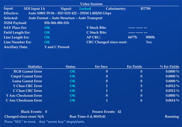 - В соответствии со стандартами SMPTE 259M, SMPTE 292M, SMPTE 296M, SMPTE 372M, SMPTE 424M и SMPTE 425M