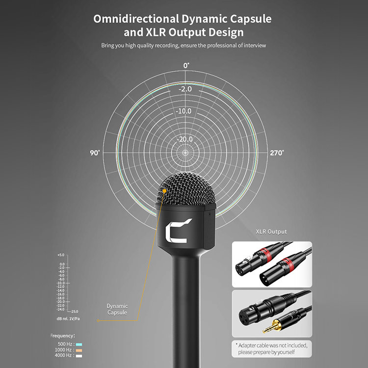 Репортерский всенаправленный микрофон для профессиональной записи интервью или прямого эфира корреспондента. Диапазон частот отлично подходит для записи голоса, а низкий собственный шум обеспечивает хорошее качество звука |