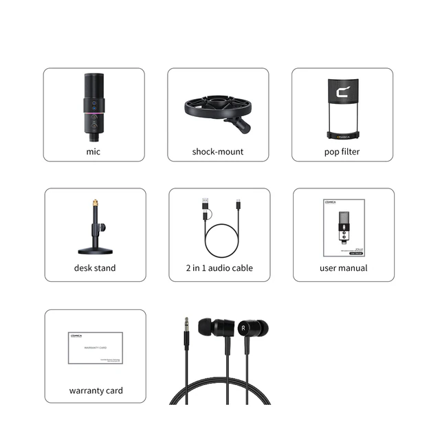 Комплектация DДля более продуктивной работы в комплект уже добавлен специальный держатель и поп-фильтр которые смогут уменьшить количество шума от ветра и вибраций. Всё это можно установить на стол при специальной стойки с устойчивой широкой ножкой |