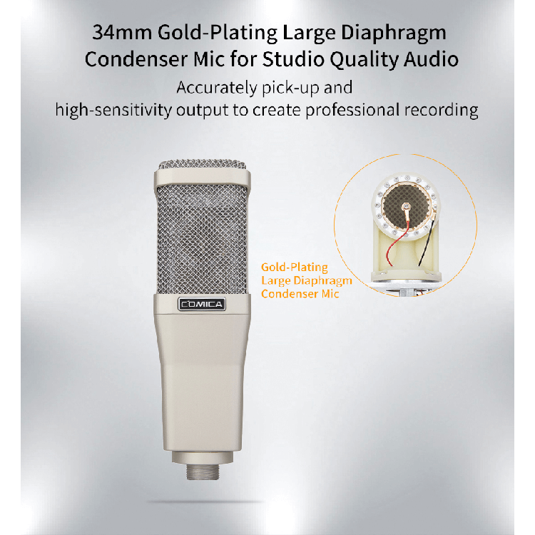 Comica STM-01 изготовлен из высококачественных материалов. Металлический корпус обеспечивает микрофону надежную защиту от случайных повреждений при любом механическом воздействии. Модель подключается посредством XLR кабеля |