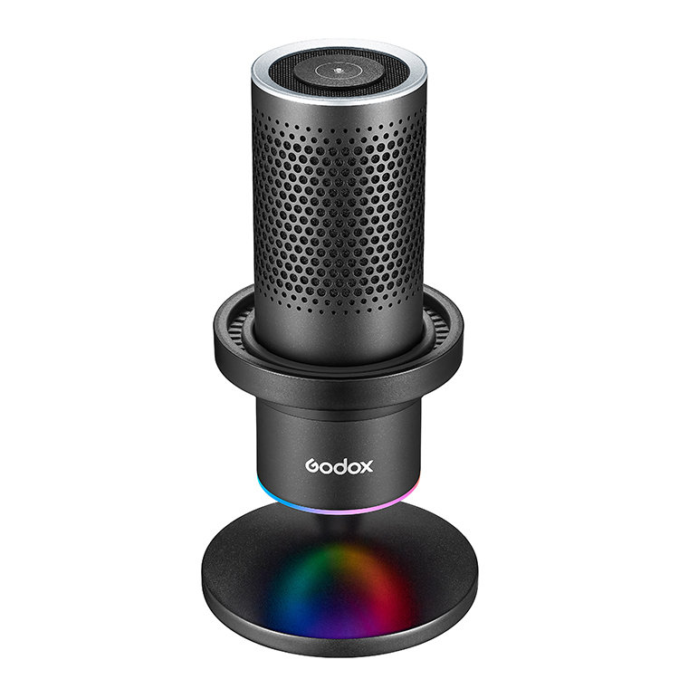Минималистичный стильный дизайн прекрасно смотрится в кадре. Приложение Godox Mic позволяет регулировать яркость RGB-подсветки, цвет и скорость смены цвета, а также выбирать различные световые эффекты |