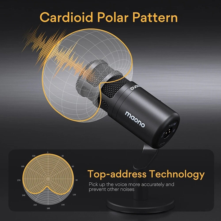 КардиоидныйPD100 имеет кардиоидную диаграмму, а значит микрофон будет снимать звук от источника на который направлен, уменьшая влияние окружения |