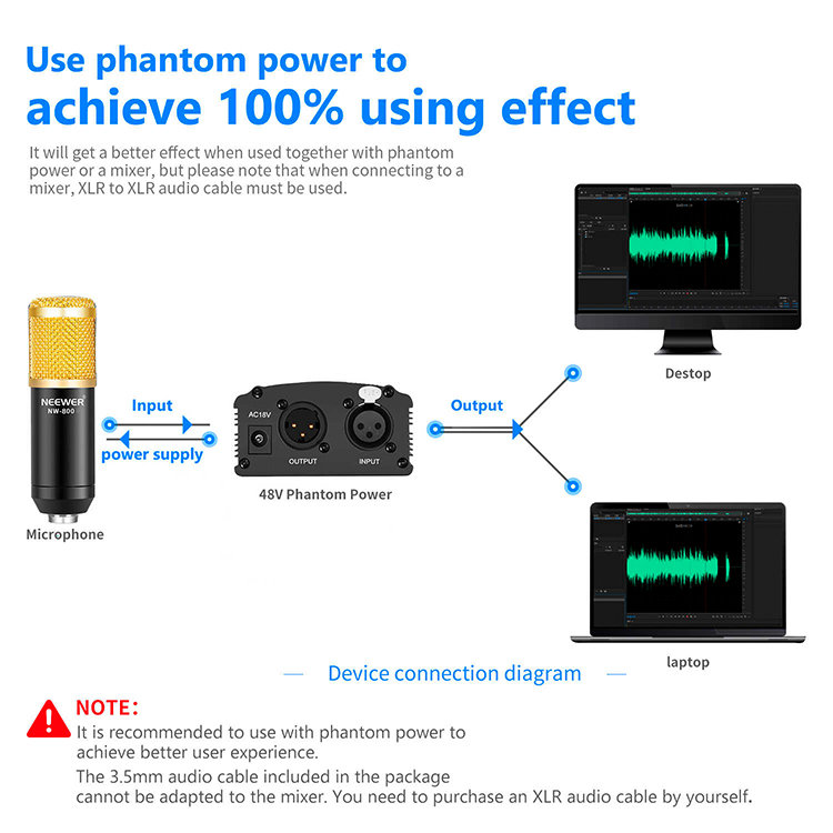 Профессиональный конденсаторный микрофон для стационарной записи в студии или комнате. Поставляется совместно с регулируемым креплением, ветрозащитой и аудиокабелем. Конденсаторный микрофон может функционировать только при соответсвующем фантомном питании |
