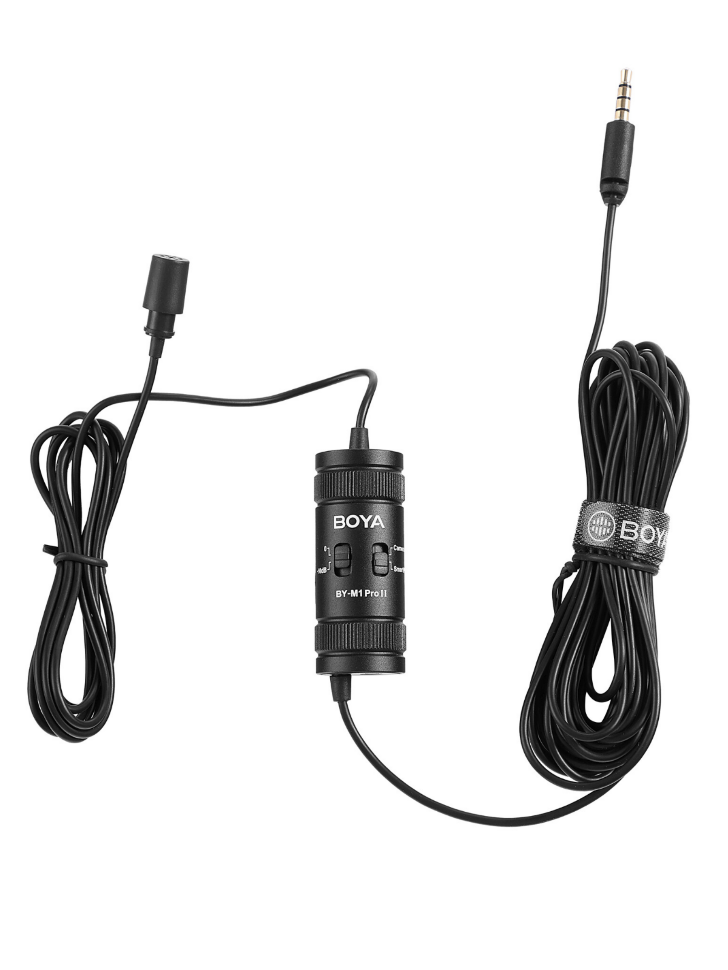 | BY-M1 Pro II — всенаправленный петличный микрофон с разъемом 3,5 мм TRRS, совместимый со смартфонами, камерами, ПК и рекордерами. Он поддерживает режимы «Камера» и «Смартфон», не требует батареек и обеспечивает удобное подключение. Микрофон оснащен кабелем длиной 6 м, что делает его идеальным для влогов, интервью и подкастов. Фильтр низких частот -10 дБ позволяет избежать искажений при записи громких звуков, а разъем для наушников обеспечивает мониторинг звука в режиме смартфона |