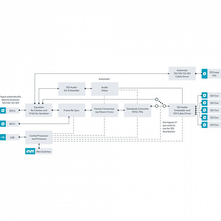 Быстрое и чистое преобразованиеМини-конвертер SDI to HDMI 6G предназначен для передачи сигнала в SD-, HD- и Ultra HD-форматах между интерфейсами SDI и HDMI в форматах до 2160p/30. Устройство позволяет выводить изображение на экран телевизоров и проекторов без задержек и потери качества за счет сохранения канала связи на HDMI-интерфейсе. Длительность переключения не превысит и одного кадра, а вы сможете моментально продолжить работу |