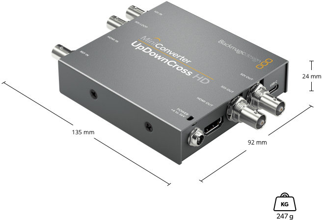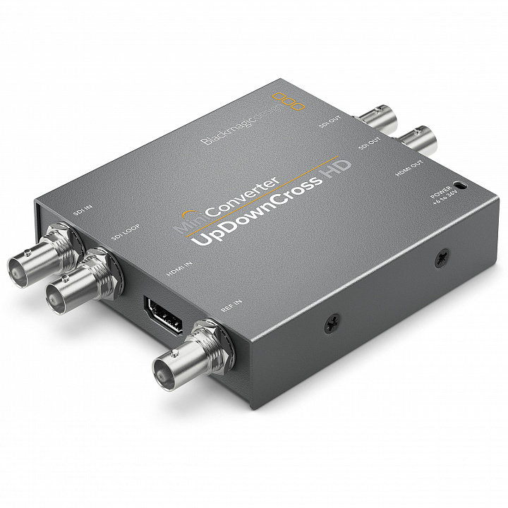 Конвертор UpDownCross HD из линейки Blackmagic Mini Converter представляет собой инновационный преобразователь видео, предназначенный для профессионального использования. Функционал обеспечивает возможность выполнения с помощью алгоритмов Teranex повышающей, понижающей или перекрестной конверсии любых форматов SD или HD. Модель обеспечивает задержку звука в автоматическом режиме для синхронизации видео и аудио