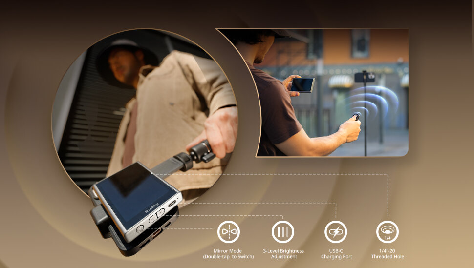 Мощное беспроводное подключение в реальном времениМонитор для селфи SmallRig Monitor Phone обеспечивает стабильную синхронизацию экрана на расстоянии до 10 метров через WiFi Direct, что позволяет мгновенно переключаться между камерами без потери качества. Устройство поддерживает передачу изображения в 4K/24fps и 4K/30fps через оригинальное приложение iPhone, а также все форматы 4K через Blackmagic Camera App. Благодаря синхронизации с основной камерой смартфона, вы получаете детализированную картинку с минимальной задержкой |