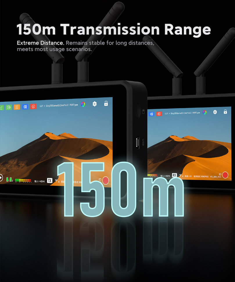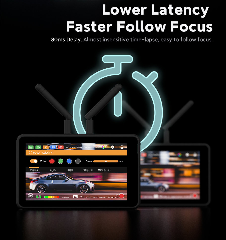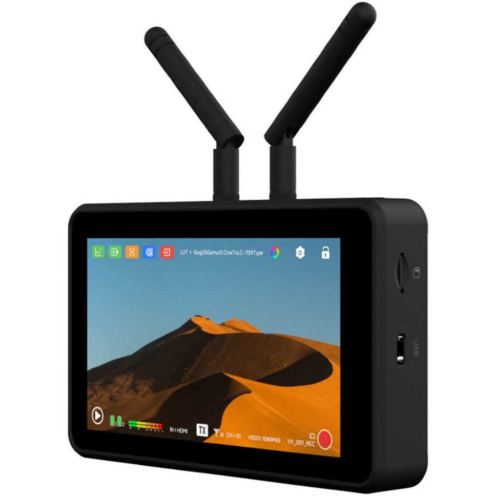 Монитор + трансмиттер + ресиверМонитор с функцией беспроводной передачи и приёма видеосигнала на частотах 5.1 - 5.8 ГГц. Устройство уже подготовлено для работы в экосистеме Vaxis и совместимо с моделями ATOM 500 HDMI, 500 SDI, 600 KV TX, A5H. Беспроводная передача сигнала работает на расстоянии до 150м с задержкой всего в 80 мс |