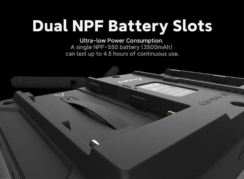 Автономная работаМонитор может питаться автономно от двух батарей NP-F с низким потреблением. Аккумуляторов на 3500 мАч хватит на 4.5 часа работы! Также устройство имеет порт для подключения наушников, что позволит мониторить аудио |