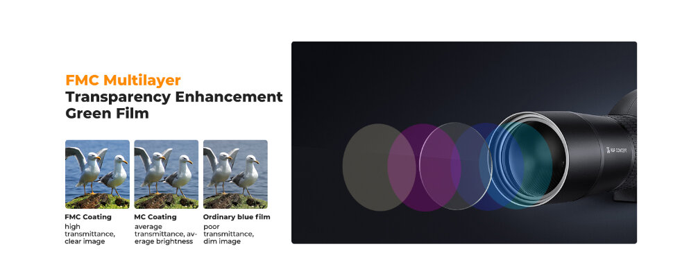 Призма BAK-4 и FMC-оптикаОптика с полным многослойным просветлением и высококачественная призма BAK-4 увеличивают светопропускание, обеспечивая четкие и контрастные изображения даже при низкой освещенности. Водонепроницаемая конструкция делает зрительную трубу идеальной для наблюдений в дождливые и туманные дни, обеспечивая надежную защиту оборудования |