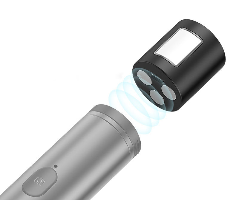 ФункциональныйНа корпусе монопода имеется кнопка, благодаря которой вы сможете сделать снимок. Для повышения качества фото и съёмке в сумерках предусмотрен специальный фонарик, что можно закрепить в верхней части держателя |