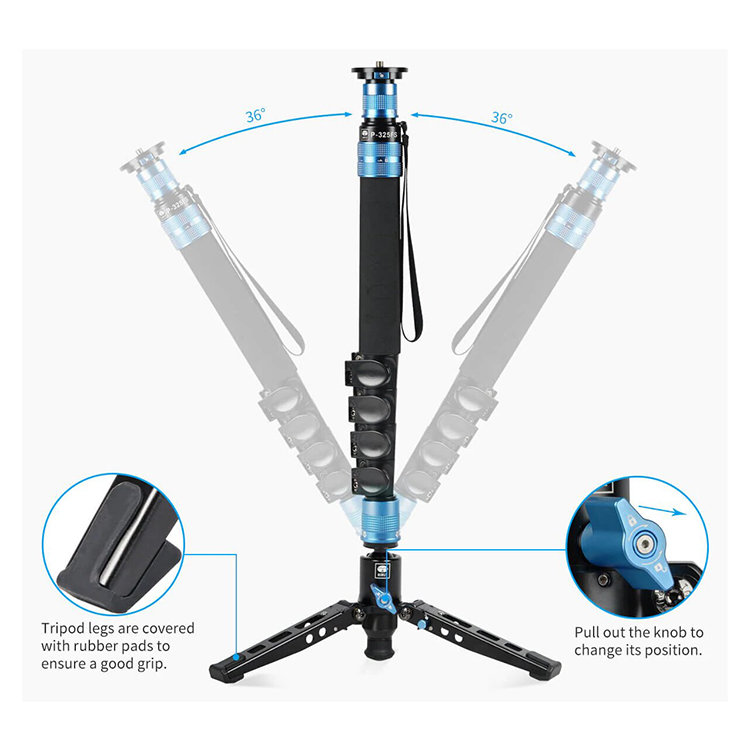 Модульная конструкцияПри необходимости монопод легко разбирается, а его части могут быть использованы отдельно. Так, вы получите и напольный монопод и мини штатив. Резиновый наконечник основной колонны можно заменить на металлический шип для работы на грунте |