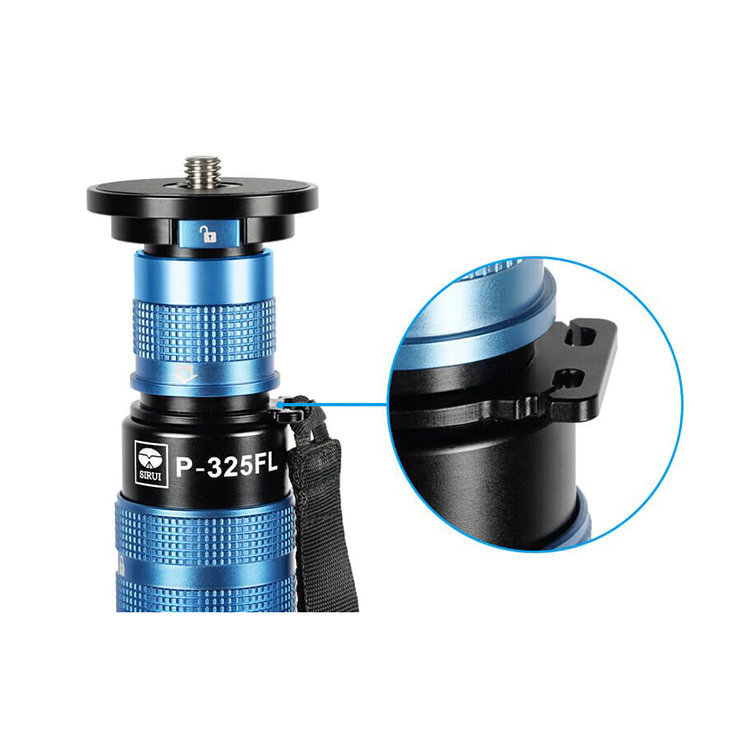 Быстросъёмная площадкаПлощадка в верхней части P-325 снимается при нажатии специальной клавиши. С помощью этого нововведения вы сможете моментально отделить голову или камеру от монопода, а после также быстро подготовиться к работе |