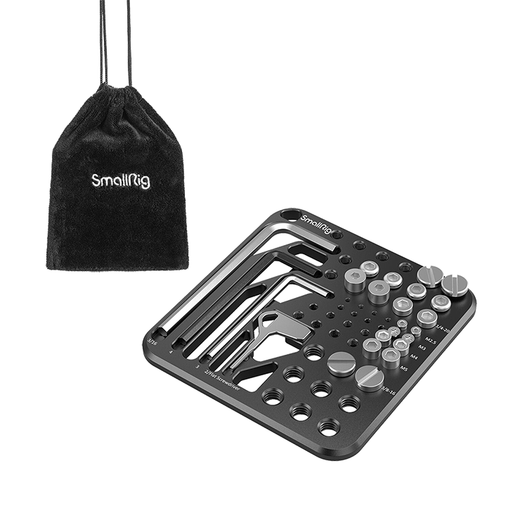 Органайзер для хранения винтов и инструментов от SmallRig. В комплектацию входят винты 1/4", 3/8", M2.5, M3, M4, M5 и шестигранные ключи. Наличие специальной проушины в верхней части позволит повесить пластину на гвоздь или шнурок |
