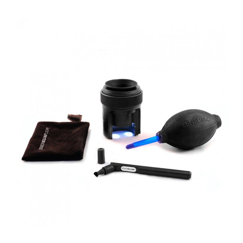 Специальный карандаш со сгибающейся конструкцией поможет добраться даже в самые труднодоступные места. Для более тщательной работы необходимо воспользоваться специальной лупой со светодиодной подсветкой, которая даст возможность разглядеть все изъяны, и предотвратит попадание пыли во время чистки. Сдуть всё лишнее можно при помощи универсальной груши. Весь комплект умещается в фирменном чехле |