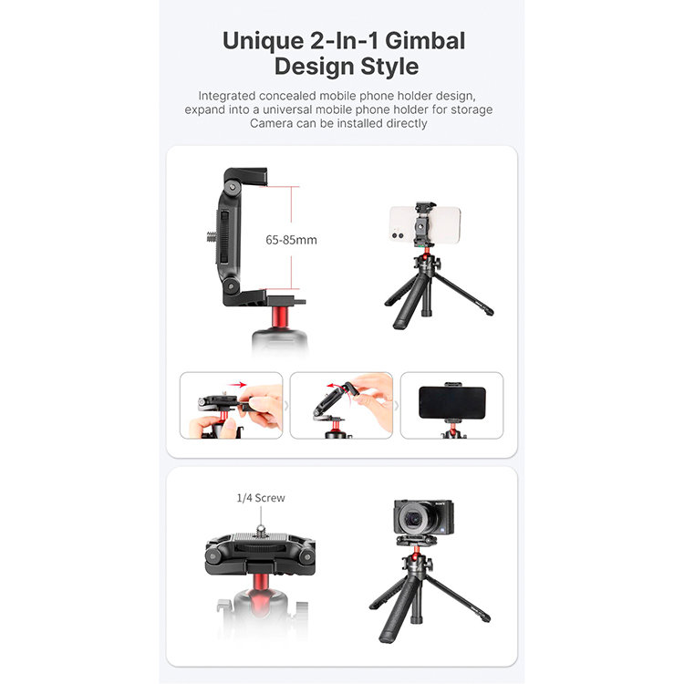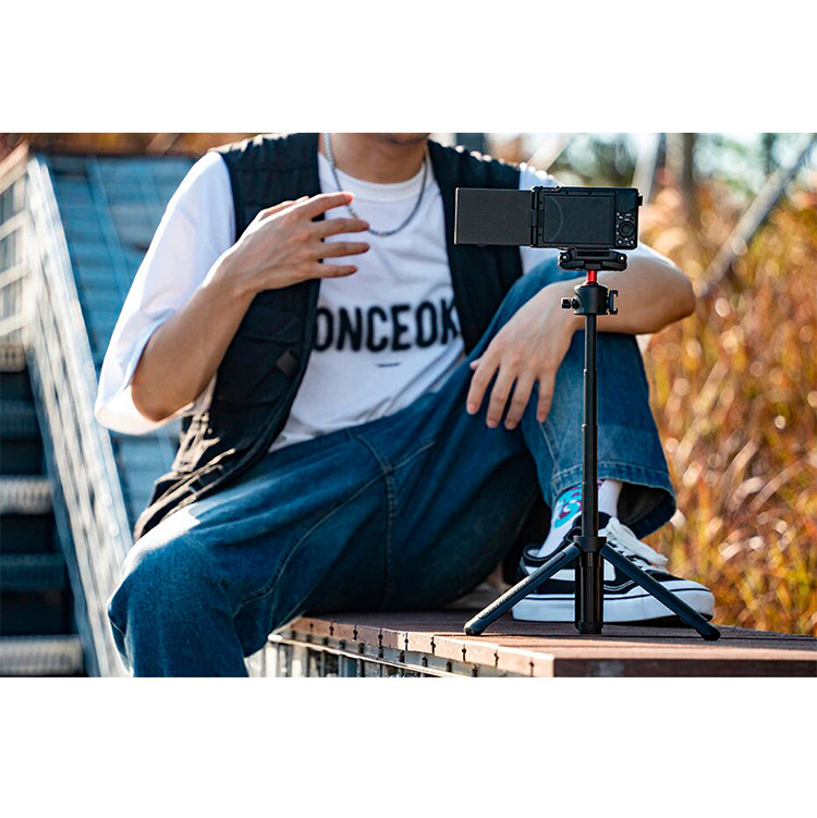 Настольный штатив с шаровой головой для осуществления съемок с использованием DSLR камер или же мобильных устройств. Складные ноги трипода имеют приятную длину и комфортно сидит в руке |