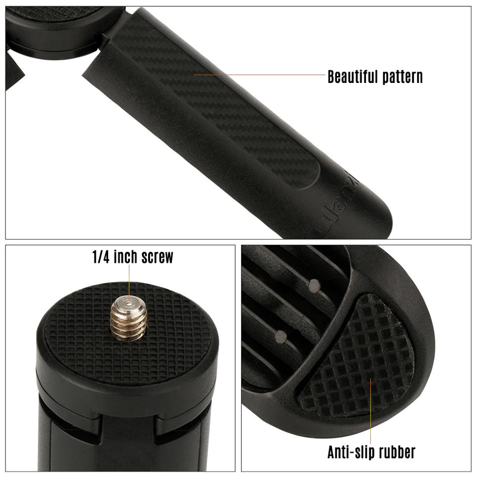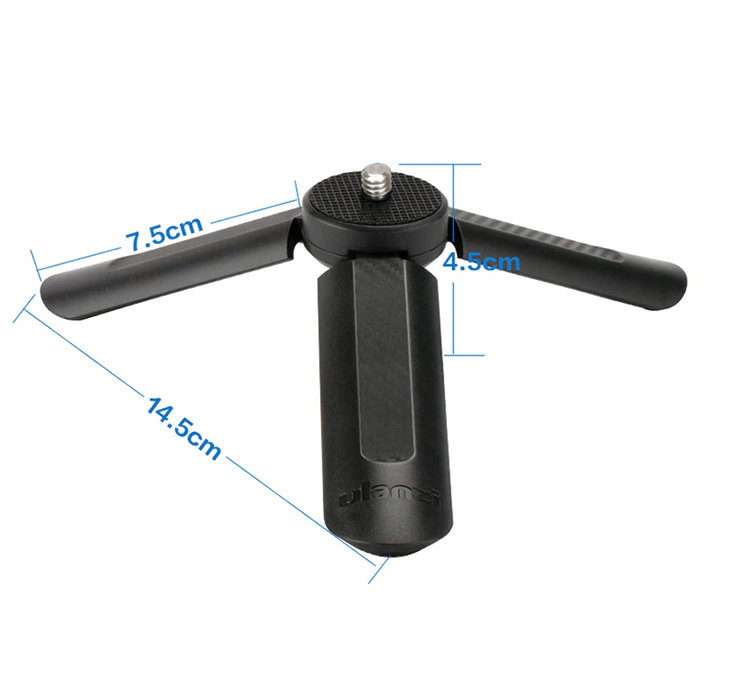 Простая и компактная настольная тренога для установки съёмочного оборудования или стабилизаторов с креплением 1/4". Модель выполнена их прочного АБС пластика и имеет противоскользящее покрытие на ножках |