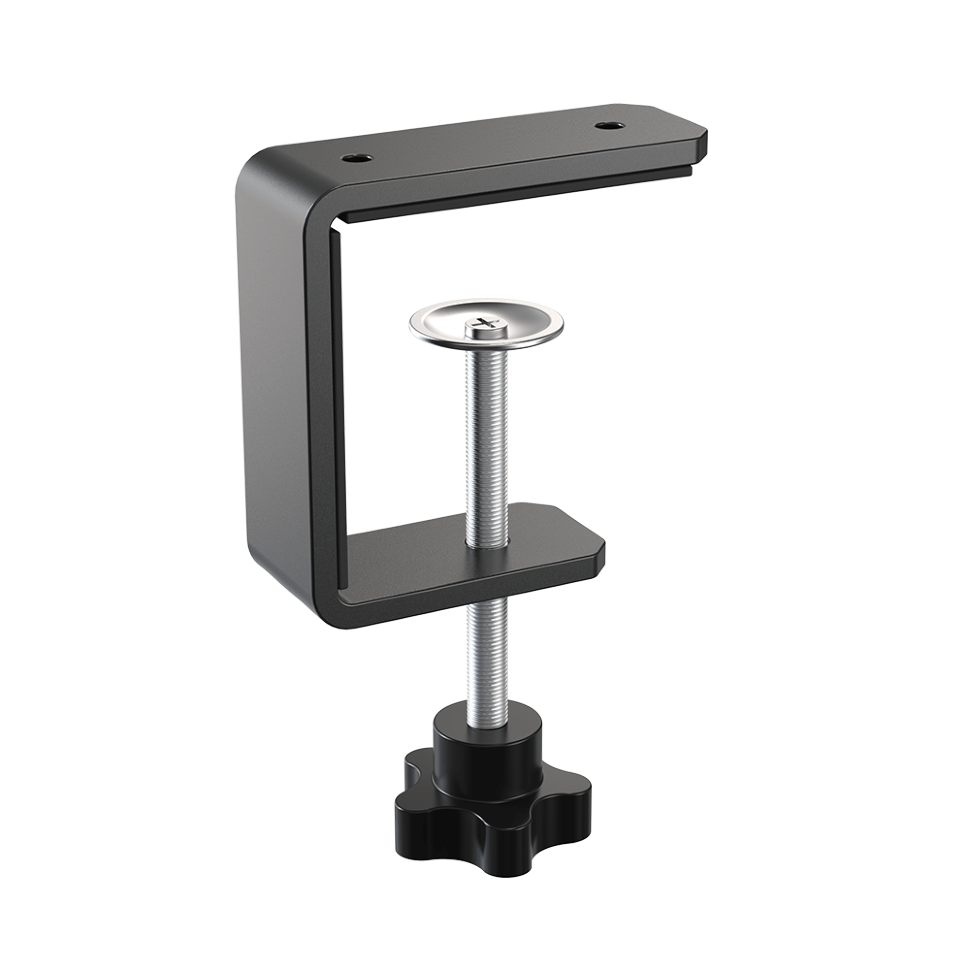 Максимальная ширина стола - 50 ммЗажим подходит для любых горизонтальных поверхностей толщиной менее 50 мм. При таких показателях можно с уверенностью сказать, что устройство может быть установлено на практически любом рабочем столе, а также на множестве иных удобных для пользователя конструкций |