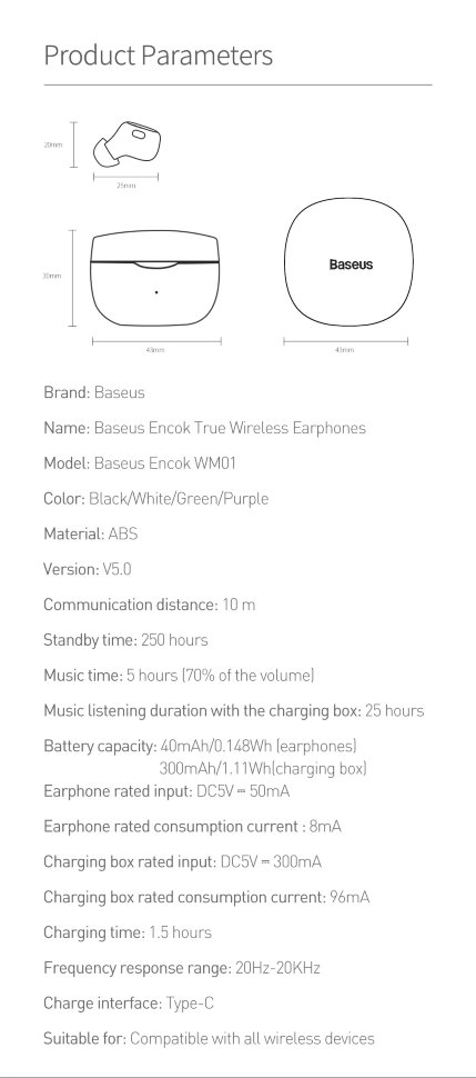 Надежное хранилищеПроизводителем предусмотрен специальный бокс для хранения Encok WM01. Компактная докстанция емкостью 2000 мАч позволит вам с легкостью подзарядить наушники. Сам бокс заряжается через USB-порт с помощью кабеля c 0 до 100% за 4 часа |