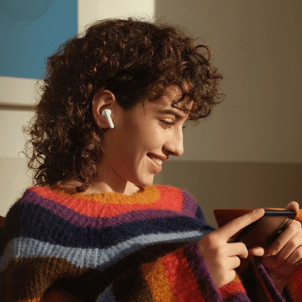 Качество звучания наушников остается высоким не только при прослушивании музыки, но и при совершении звонков. Голосовой алгоритм, основанный на искусственном интеллекте, работает на полную мощность, обеспечивая ясность и понятность ваших разговоров даже в шумных общественных местах |