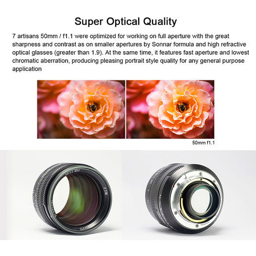 Модель имеет максимальную диафрагму f/1.1, что позволяет эффективно работать в условиях плохой освещенности. Многослойное покрытие позволяет устранить блики при съемке. Корпус изготовлен из высокопрочного алюминия, это является гарантией надежности и долговечности |