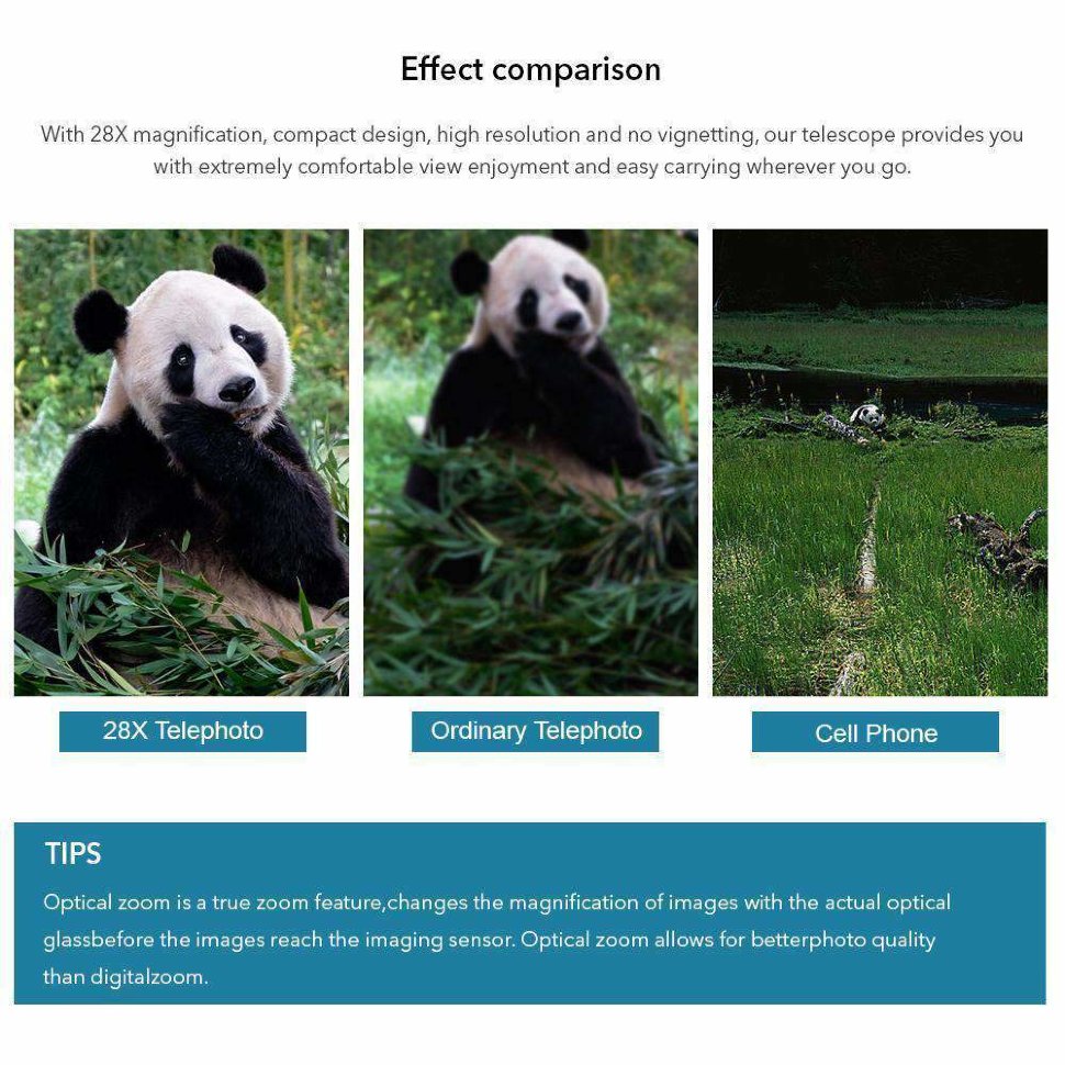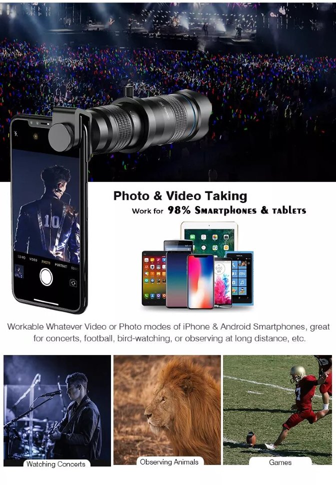 Телеобъектив для смартфона, с увеличением 28x, что позволяет снимать с потрясающей четкостью объекты, находящиеся весьма далеко |