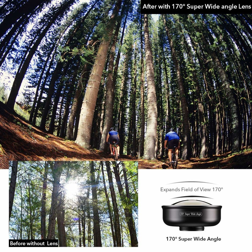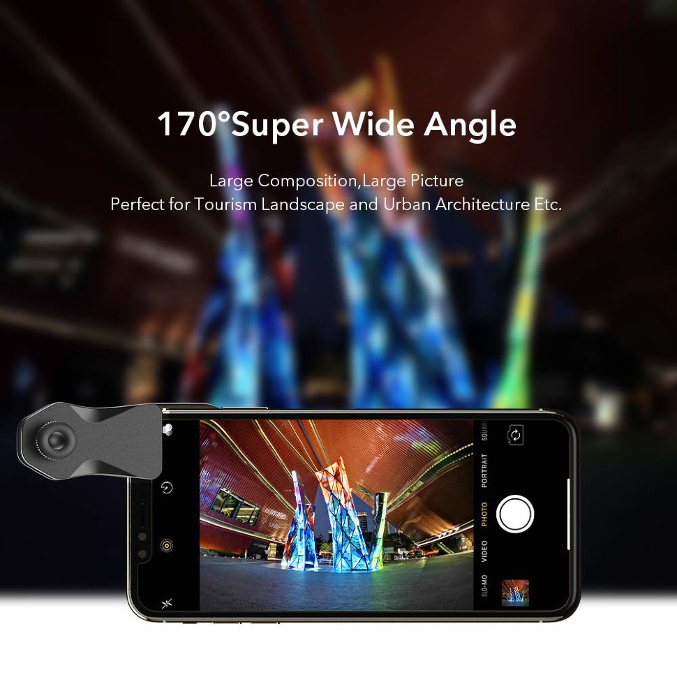 Больше пространстваНовый широкоугольный объектив от Apexel увеличивает угол обзора до 170°, позволяя вместить в один кадр гораздо больше пространства без виньетки. Высокое качество оптики позволяет снимать даже в 4K HD без потери качества! |