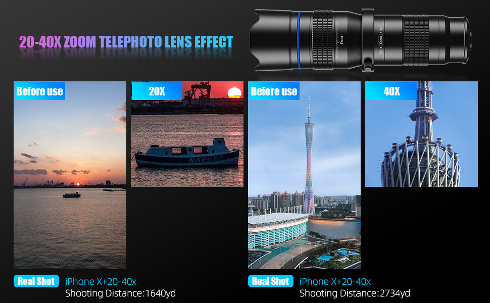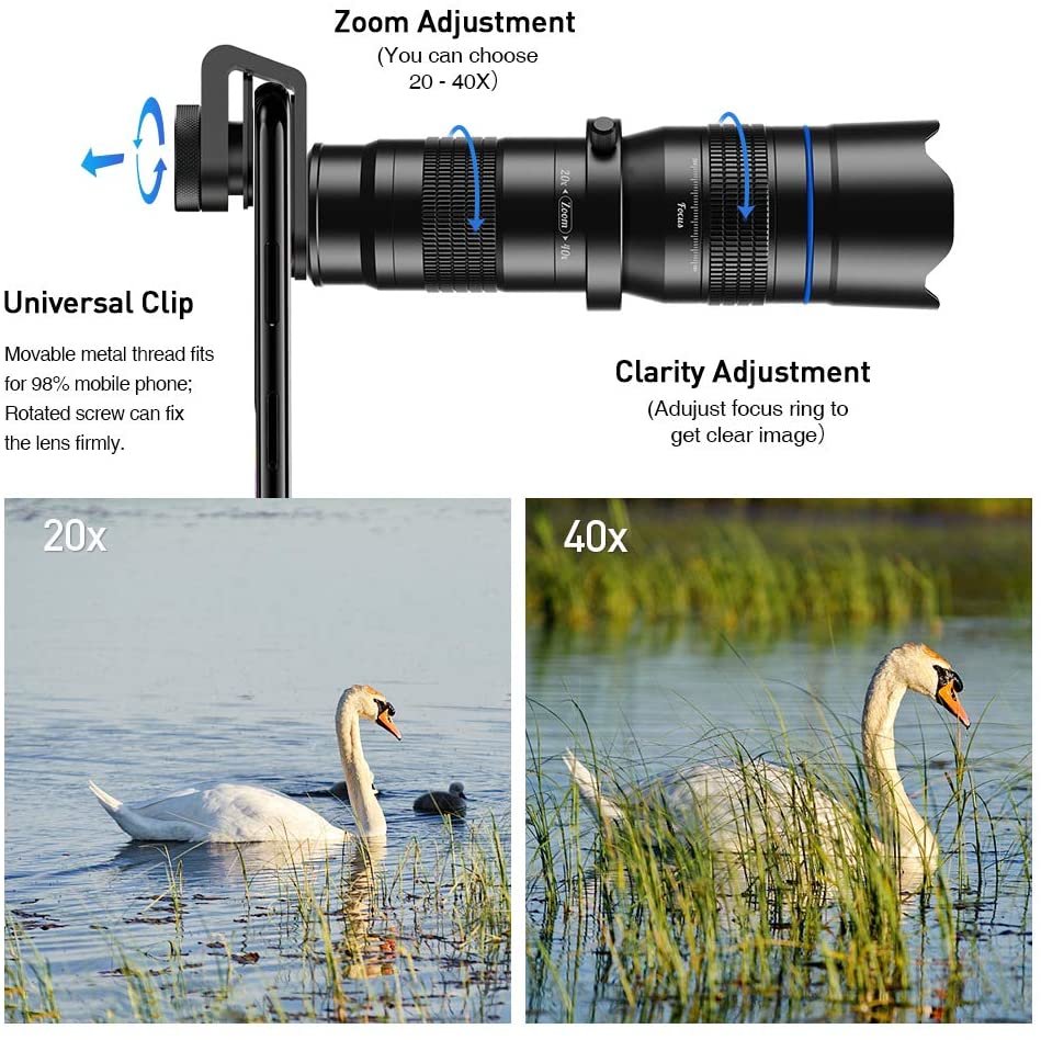 Настоящий зум объектив для смартфона! Модель имеет увеличение 20 - 40x и позволит снимать на большом расстоянии с потрясающей резкостью |