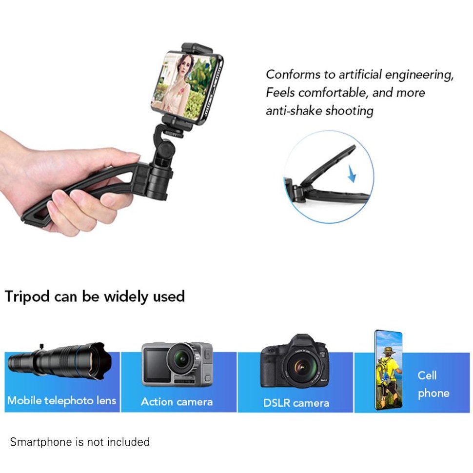 Для лучшего качества картинки в комплект добавлена тренога, что позволяет избавиться от вибрации при съёмке с рук. Ножки мини-штатива можно сложить и использовать как рукоятку |