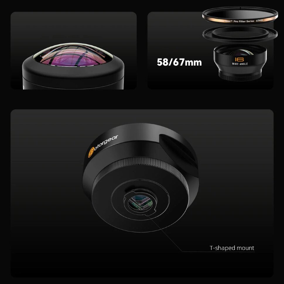 Удивляет качествомМобильная оптика Fotorgear серии Pro II выполнена из материалов гарантирующих надежность. Крепкий корпус выточен их алюминия, а оптическое стекло с мультипокрытием обеспечивает чёткую и ясную картинку. Для установки используется байонет T-mount от Moment, совместимый с соответствующими аксессуарами, в том числе чехлом или креплением от Fotorgear (приобретается отдельно). Отличительной особенность серии является возможность установить светофильтр при помощи адаптера (в комплект не входит) |