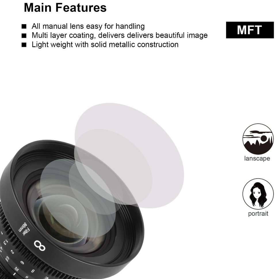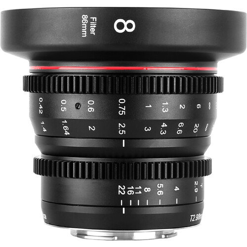 Профессиональный широкоугольный объектив разработан для беззеркальных кроп камер. Имеет ручную фокусировку и встроенные зубчатые кольца 0.8 MOD для работы с приводами |