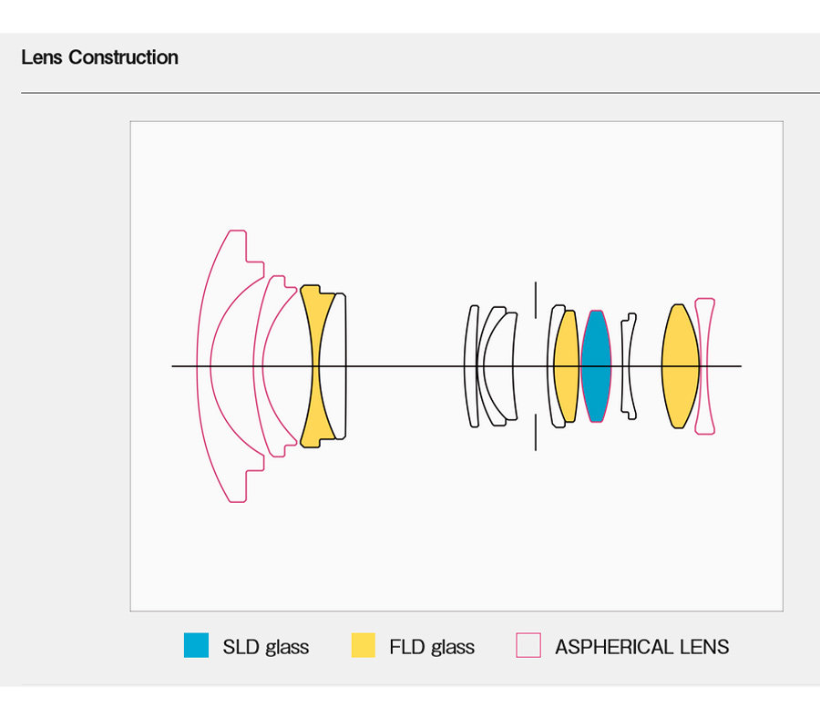 Все, что нужно для качестваОптическая схема состоит из 13 элементов в 10 группах, включая 8 специальных элементов, таких как сверхнизкой дисперсии (3 FLD, 1 SLD) и 4 асферические линзы. Минимальная дистанция фокусировки всего 11.6 см, что позволяет снимать динамичные крупные планы небольших объектов с широкой перспективой на фоне |