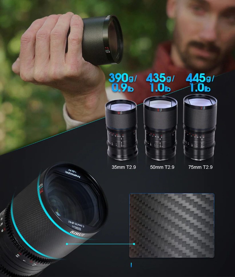 Самый лёгкий. Самый маленькийSaturn - это новинка в серии популярных и доступных объективов с анаморфированием. Корпус из карбона и оптимизированная конструкция позволили сделать самый компактный и лёгкий вес (менее 500г) среди аналогов. Благодаря этому объектив отлично подходит для съёмки со стабилизатором или FPV дроном |