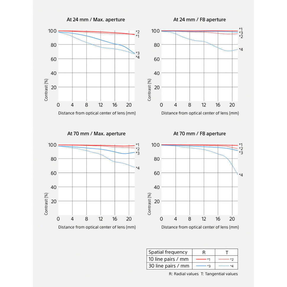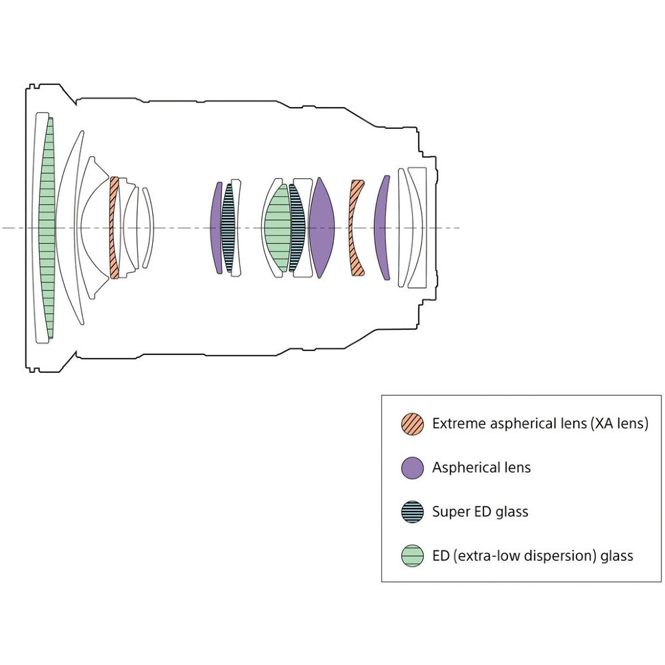 Пять асферических элементов, включая два XA элемента (extreme aspherical elements) минимизируют дисторсию, аберрации и иные искажения. Резкость на краях кадра не теряется даже на 70мм. Предусмотрена фирменная бленда, с маленьким окошком для контроля регулируемых светофильтров |
