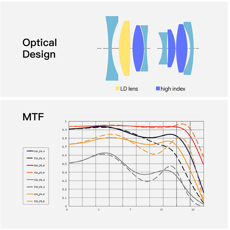 Объектив для беззеркальных камер с сенсором APS-C и меньше. Имеет оптическую схему, состоящую из 8 элементов в 6 группах, в том числе один элемент с низкой дисперсией и три элемента с высоким коэффициентом преломления |