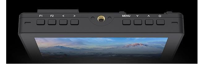 Продуманная конструкцияМонитор имеет вес всего лишь в 142 г, а значит не будет перегружать съёмочное оборудование. На верхнем торце расположились кнопки управления, а справа порты HDMI и питание. Задняя панель оснащена адаптером для установки аккумуляторов типа NP-F. Также, предусмотрен специальный кронштейн, что можно закрепить на нижнем или правом торце и сразу поставить на камеру или другое оборудование |