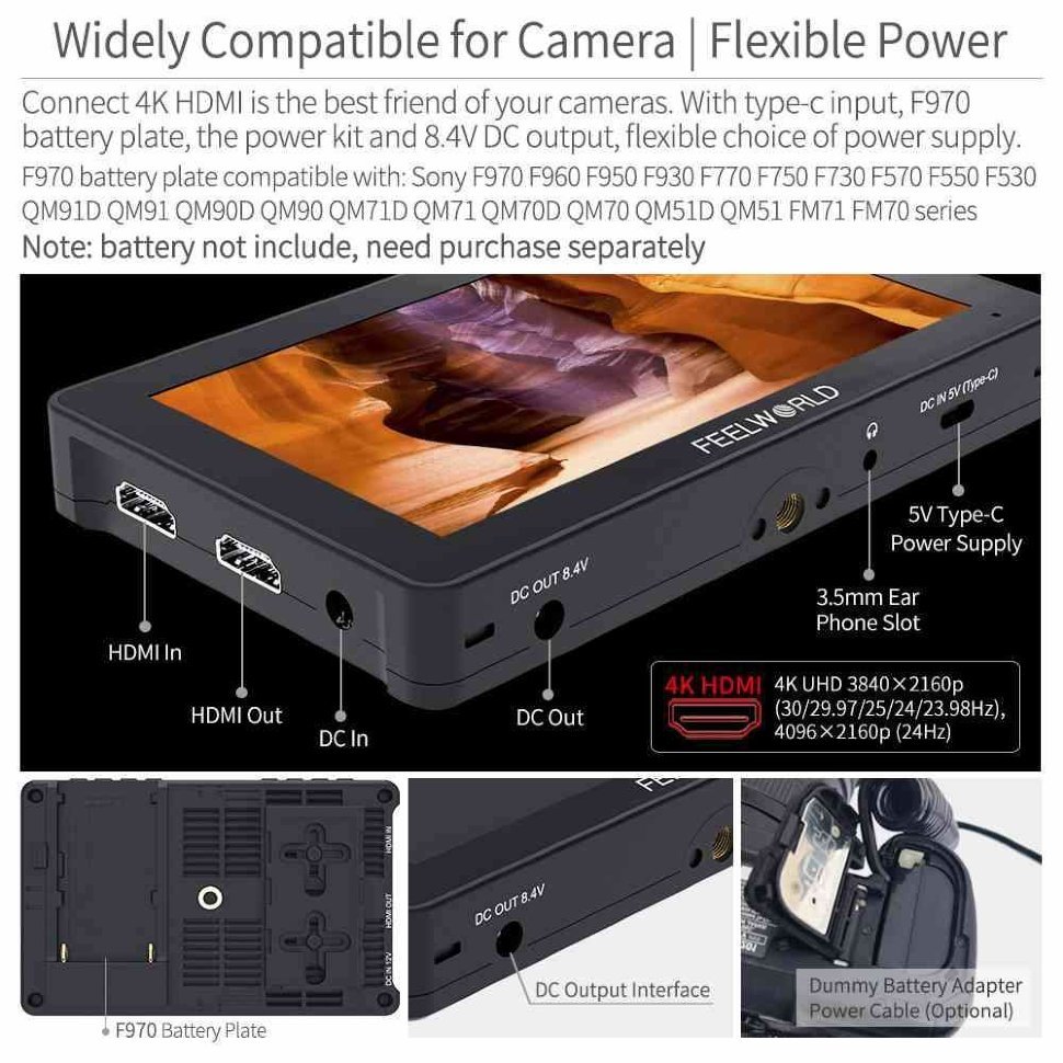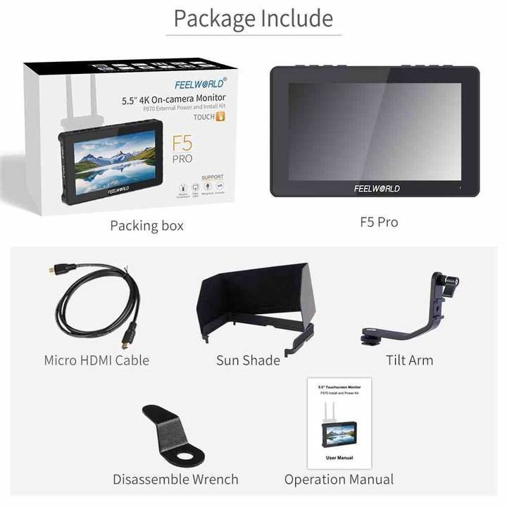 Четвертая версия популярного монитора F5 Pro стала еще лучше! Диагональ увеличена до 6" экраном способен сделать съёмку более комфортной и продуктивной. Full HD IPS дисплей с разрешением 1920х1080 pi поможет более тщательно отслеживать фокус и настройки цвета. Устройство может быть подключено к более крупному экрану и транслировать видео в формате 4К |