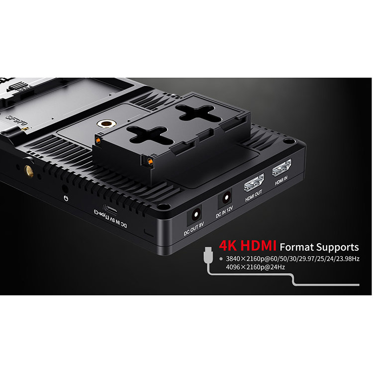 Современный 4K мониторСовременный IPS монитор с диагональю в 7" и ультратонкими рамками для качественной и комфортной съёмки. Имеет вход и выход HDMI с возможностью транслировать 4K/60Hz, а также 4096×2160p (24Hz) |