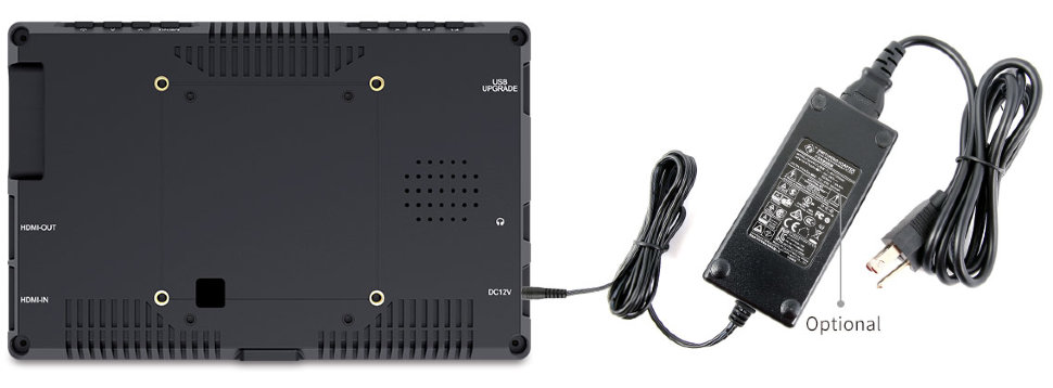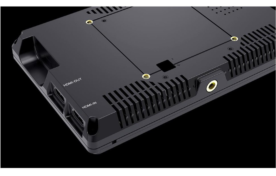 Ультратонкий металлический корпусПри всей своей функциональности монитор имеет толщину всего лишь в 25 мм и массу 365 г, что делает его крайне удобным в использовании, особенно учитывая массивность конструкций профессионального оборудования. На верхнем торце расположились кнопки управления и колесико регулировки, а на левом входы/выходы HDMI, питание и разъём для наушников. Отверстие для стандартного крепления 1/4 дюйма есть на нижнем торце, что позволяет закрепить монитор в удобном положении. Необычным для этого типа устройств, стало наличие отверстий для кронштейнов VESA 75 мм |