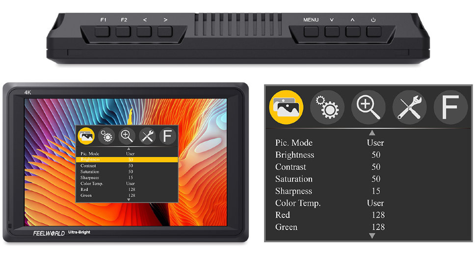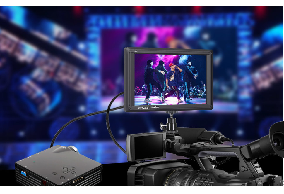7-ми дюймовый профессиональный операторский монитор представленный фирмой Feelworld, имеет высокое разрешение 1920х1200 и может быть подключен к другому, более крупному монитору посредством HDMI с возможностью трансляции видео в формате 4K |