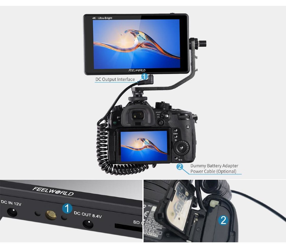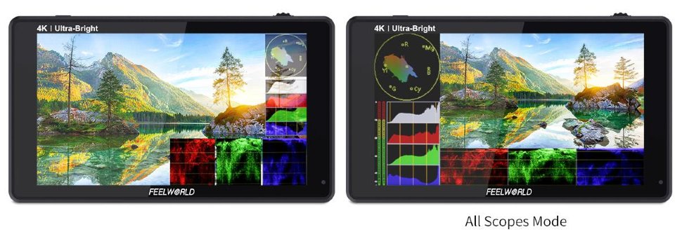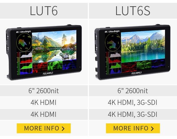 СуперяркийНовая модель монитора от Feelworld имеет яркость в целых 2600nit, что позволяет работать в условиях яркого солнцезащитного света без козырька. Легкий, но прочный LUT6 весит всего 300 г, и может быть установлен на камеру или систему риг при помощи кронштейна поставляемого в комплекте |