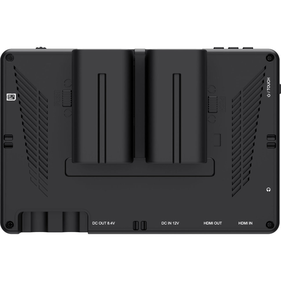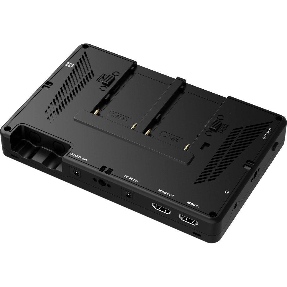 Подключение и питаниеМонитор крепится при помощи винта 1/4". На нижней части корпуса имеется соответствующее резьбовое отверстие. Модель снабжена адаптером для двух NP-F970 батареей и имеет возможность подключения от сети. Передача видео осуществляется через порт HDMI (вход и выход). Для мониторинга звука предусмотрен выход на наушники |
