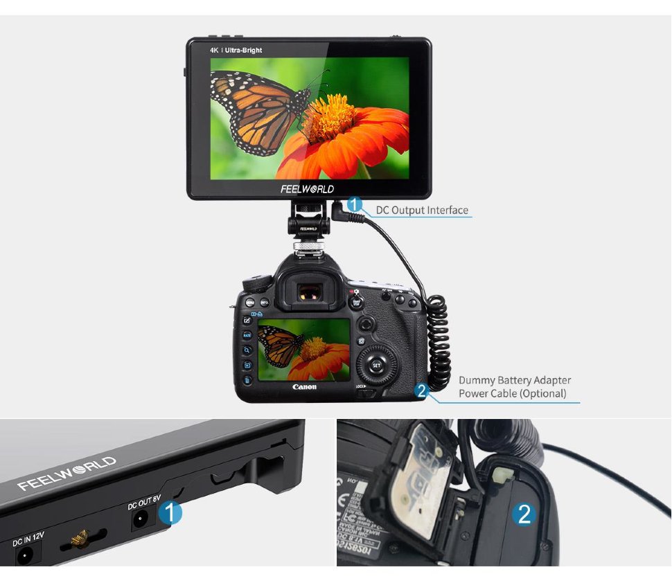 Питание камерыМонитор может работать от сетевого адаптера или батареи NP-F, так, аккумулятор на 6600 мАч способен поддерживать работу устройства до 3 часов. Предусмотрена возможность подключения питания к камере, что позволит продлить время съёмки |