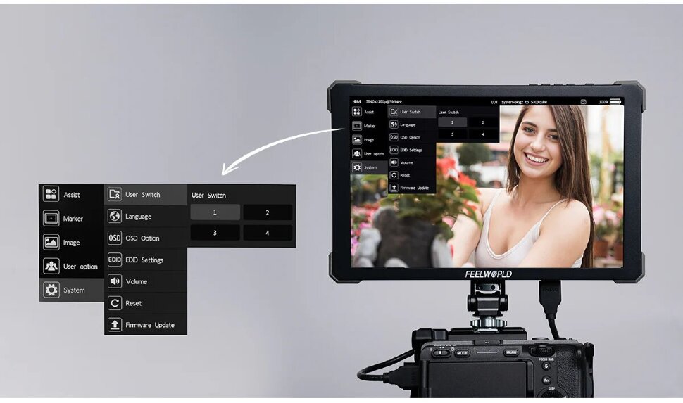 Расширенные инструменты для точной работыT10 поддерживает загрузку 32 пользовательских 3D LUT для мгновенной цветокоррекции и включает три режима HDR (HLG1-3), раскрывая детали в тенях и светах. Встроенные инструменты — waveform, вектроскоп, гистограмма и аудиометр — заменяют дорогостоящее оборудование, обеспечивая точный мониторинг сигнала. Эти функции активируются одним касанием, а их расположение на экране можно настроить для удобства |