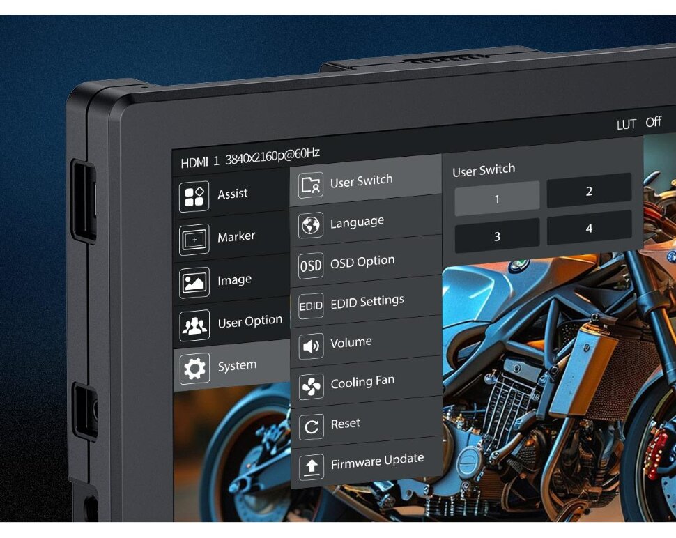 Точность цветаПоддержка HDR с профилями HLG1, HLG2, HLG3 расширяет динамический диапазон, сохраняя детали в тенях и светах. Загрузка до 32 пользовательских 3D LUT (.cube) через USB-накопитель позволяет предварительно оценивать цветовые решения. Встроенные инструменты включают: подвижные осциллограммы (RGB/YUV/Y), вектроскоп, гистограмму и аудиометр, которые можно перемещать по экрану. Функция «Scope Mode» активирует все инструменты одним нажатием, экономя бюджет на отдельном оборудовании для видеографов |