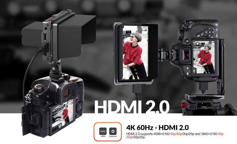 HDMI 2.0Lilliput T5 имеет быстрый HDMI-порт, и способен принимать изображение в 50 и 60 фпс, с разрешением 3840 x 2160 и 4096 x 2160 |