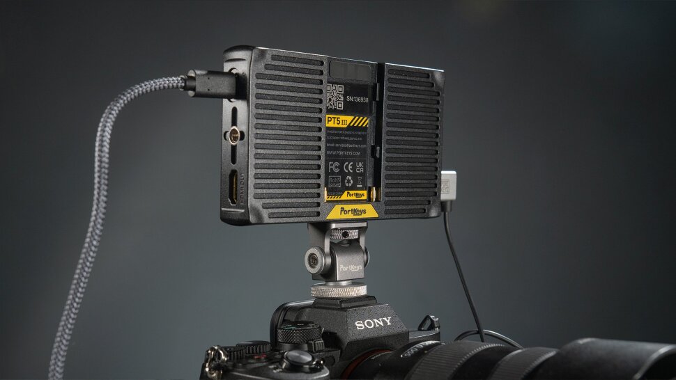 Непрерывный работаPT5 III питается от одного аккумулятора NP-F с низким потреблением 7 Вт, что обеспечивает более 2 часов работы с батареей NP-F550, а альтернативное питание через Type-C совместимо с Power Bank или V-mount-источниками. Система подключений включает HDMI-вход (поддержка 4K DCI 30p), HDMI-выход (1080p60), аудиовход/выход 3,5 мм и USB для обновления ПО. Два крепежных отверстия 1/4" с фиксирующими штифтами обеспечивают надежное крепление, а в комплектацию входят солнцезащитный козырек, кабели HDMI и крепление MH-2 для мгновенного начала съемки |